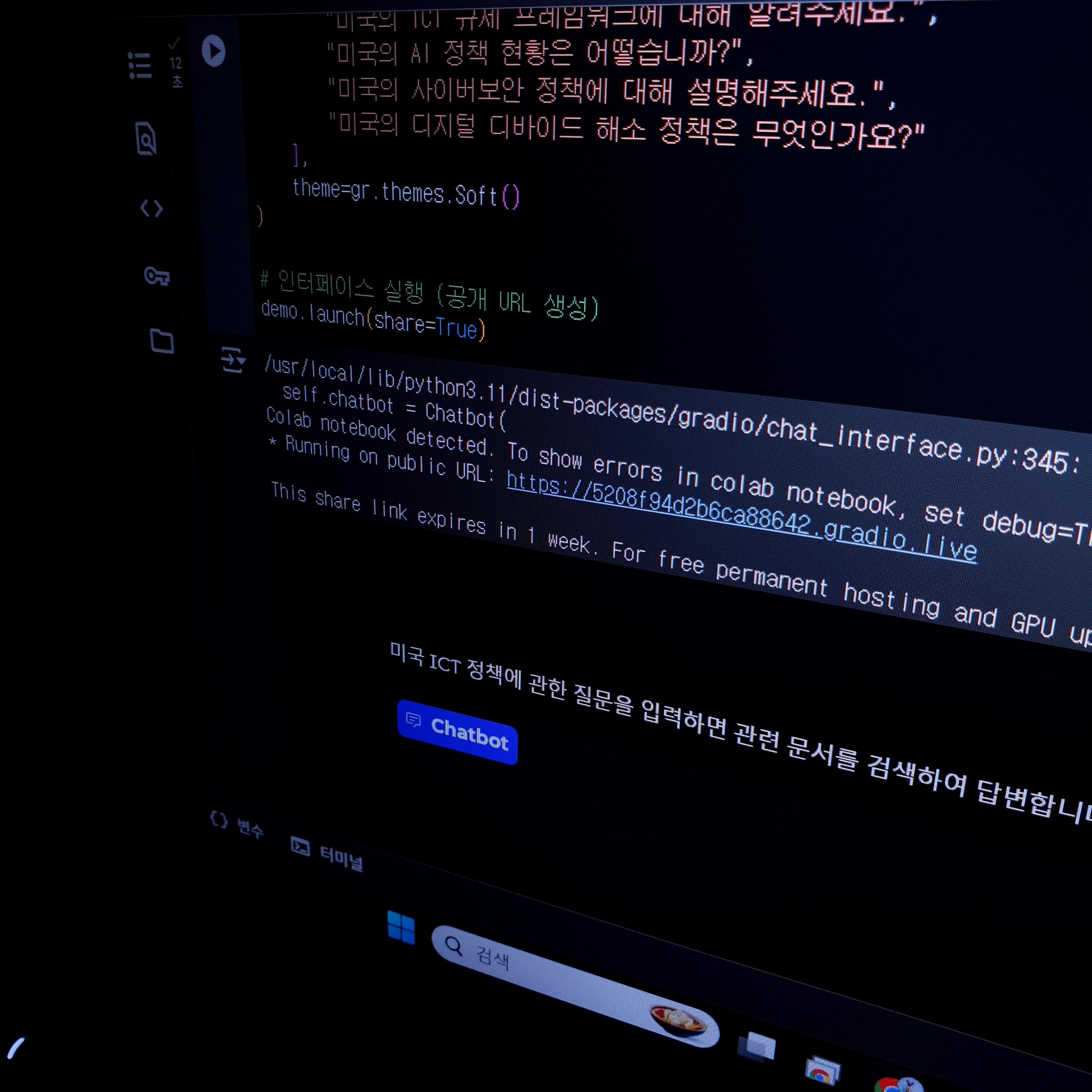 마지막으로 Gr.ChatInterface를 사용해 웹 UI 챗봇을 구현했습니다.