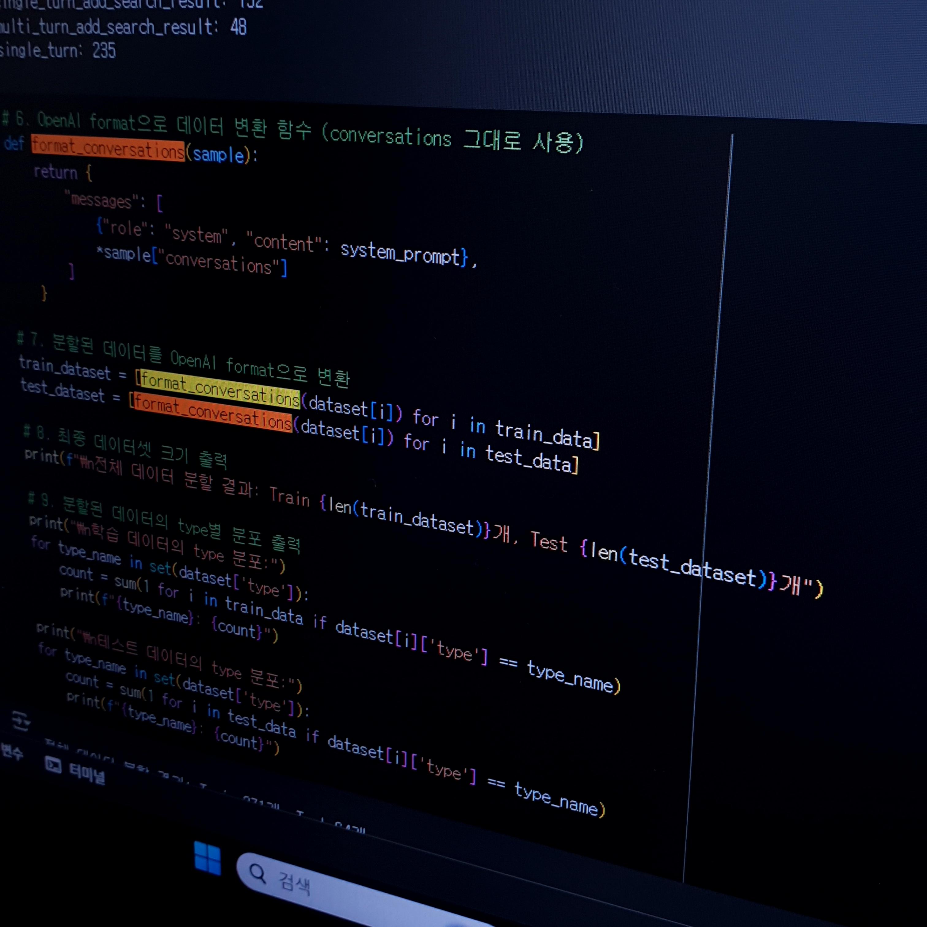 이후, 각 샘플에 system prompt와 기존 대화를 합쳐 messages 형식으로 변환했습니다.