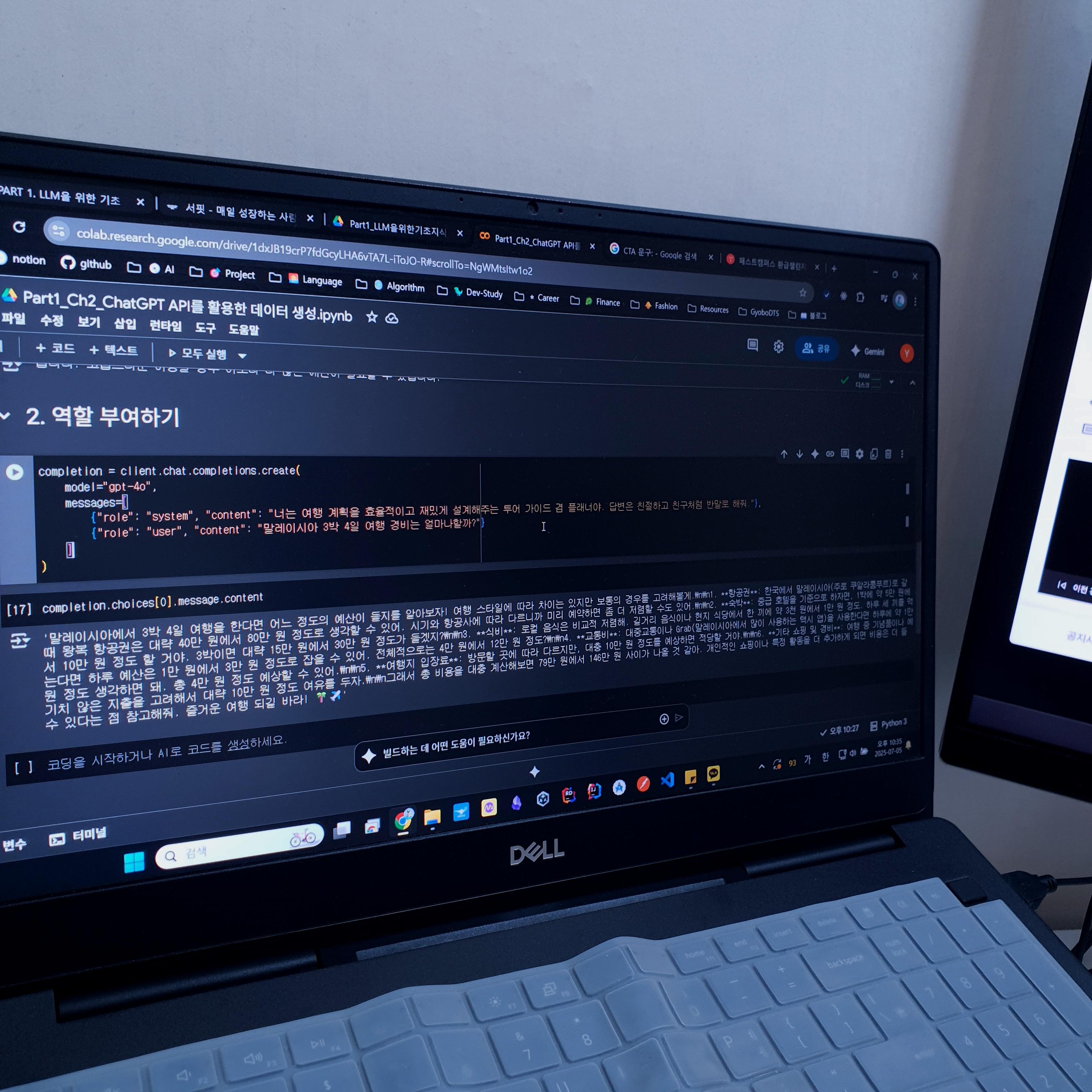 이번 강의 부터는 조금씩 실습을 진행했습니다. ChatGPT API를 사용해 보는 것이었는데요.